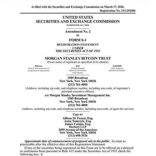 Morgan Stanley filed S1 for spot Bitcoin ETF with MSBT ticker