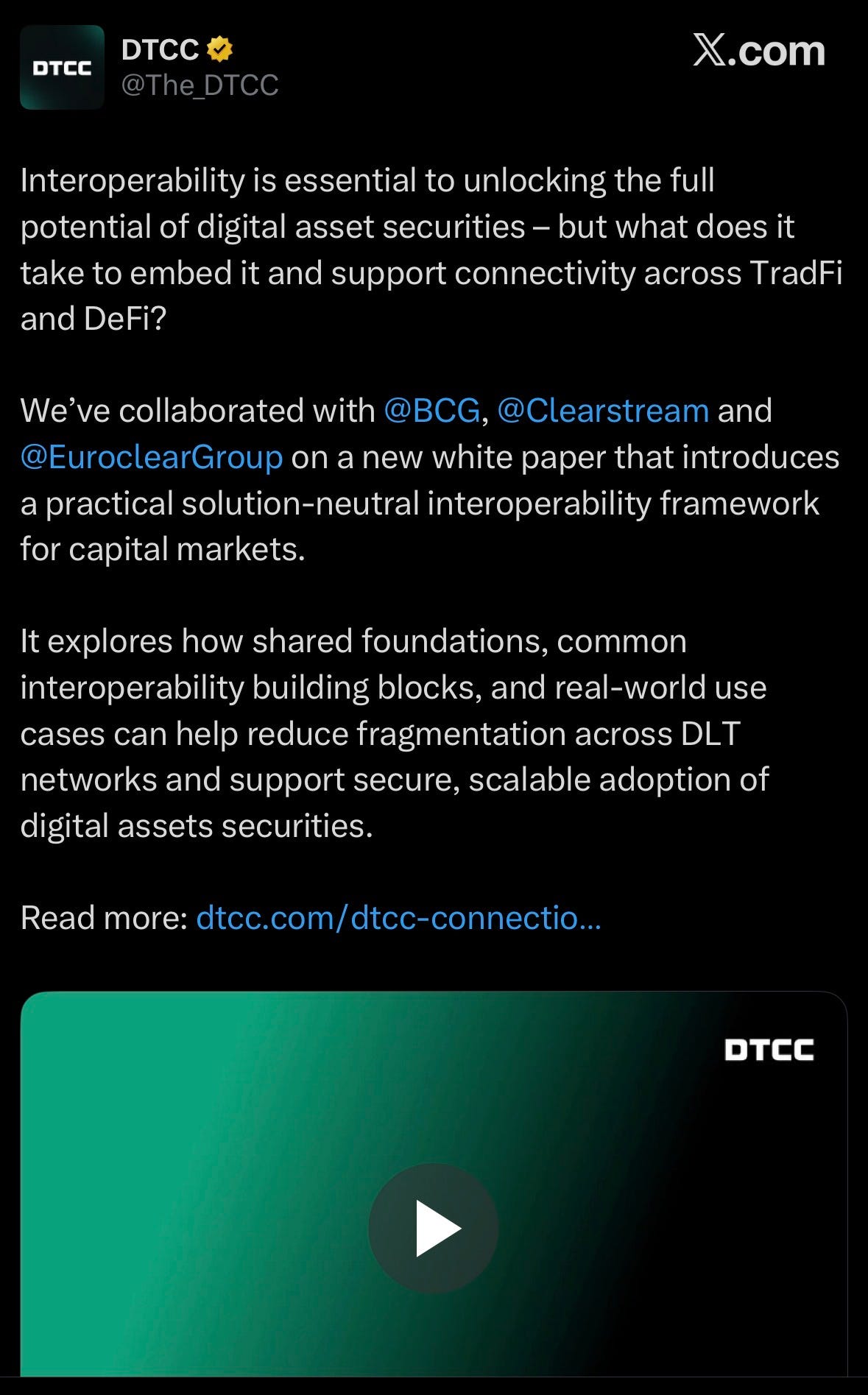 DTCC, BCG, Clearstream, and Euroclear released digital asset interoperability framework.