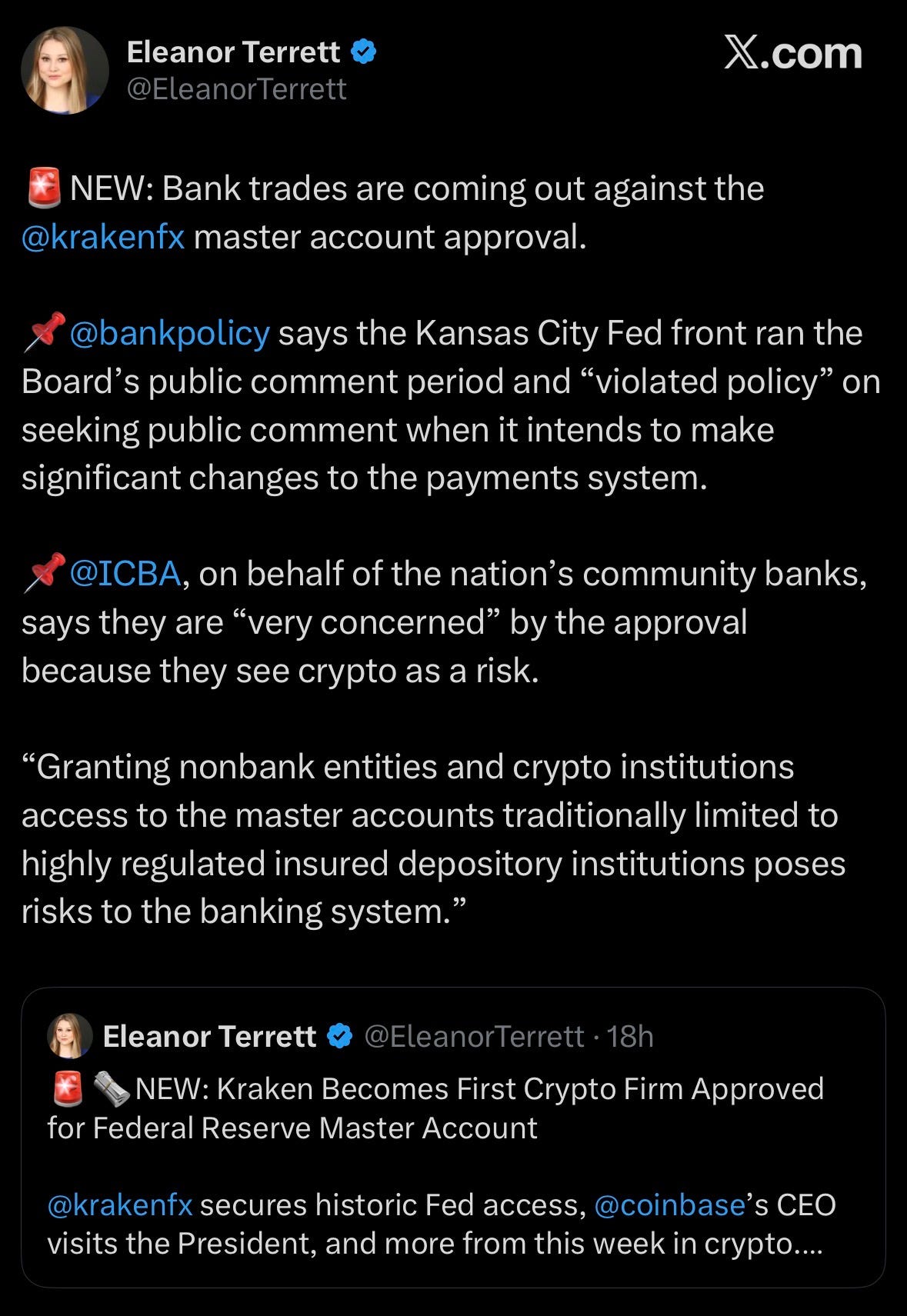 US banks push back on Kraken master account approval warning it could let crypto-focused firms access central bank payment rails without the regulatory safeguards applied to traditional banks.