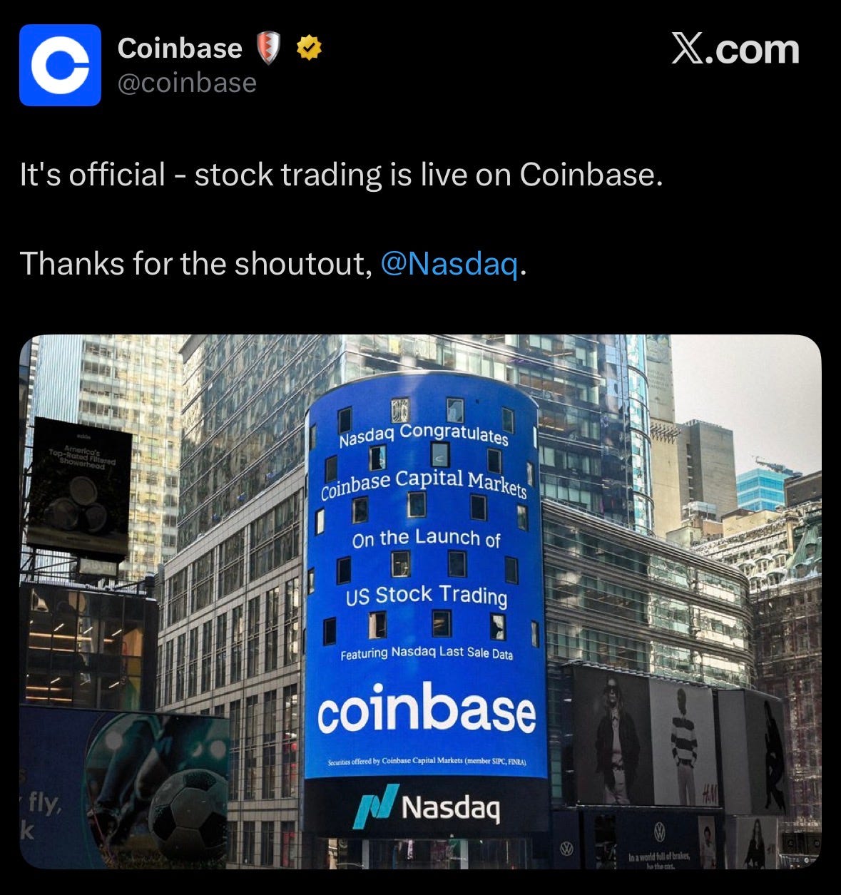 Stock Trading went live on Coinbase.