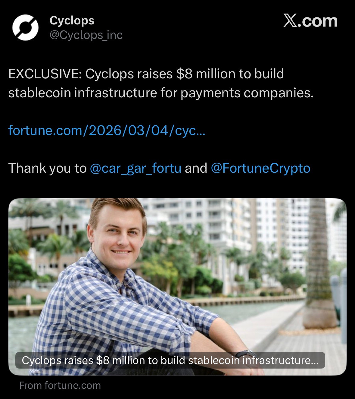 Cyclops secured $8M from Castle Island etc to build stablecoin infrastructure for payment companies