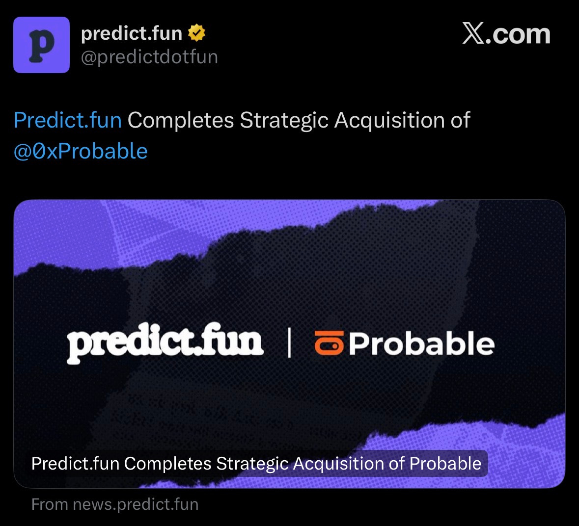 Predictdotfun acquired Probable to strengthen onchain prediction markets on BNB Chain