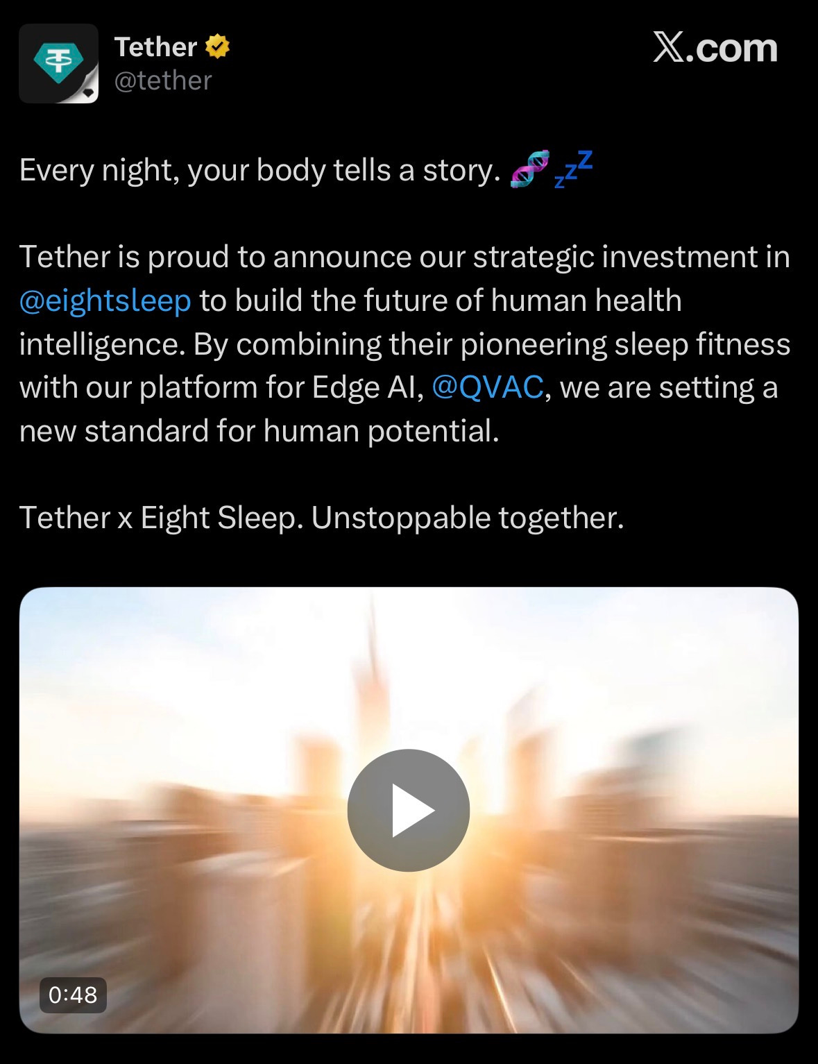 Tether invested $50M in Eight Sleep at $1.5B valuation