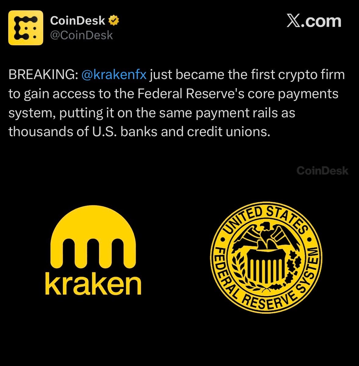 Kraken becomes first crypto firm to secure access to the Federal Reserve’s core payments infrastructure.