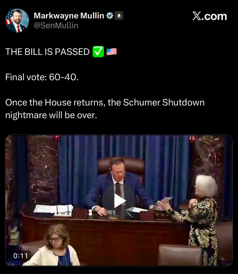 Senate passed bill ending America’s historic 41 Day Government Shutdown