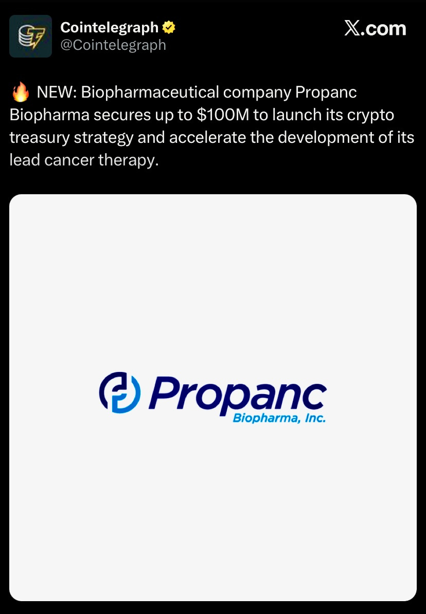 Nasdaq-listed Propanc Biopharma secured up to $100M in convertible preferred stock financing from Hexstone Capital, with $1M upfront and $99M available over the next year to build a digital asset portfolio and fund its lead cancer therapy trials targeting 2026