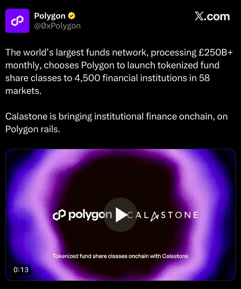 Calastone partnered with Polygon to enable asset managers to distribute tokenized fund share classes on its network starting Wednesday.