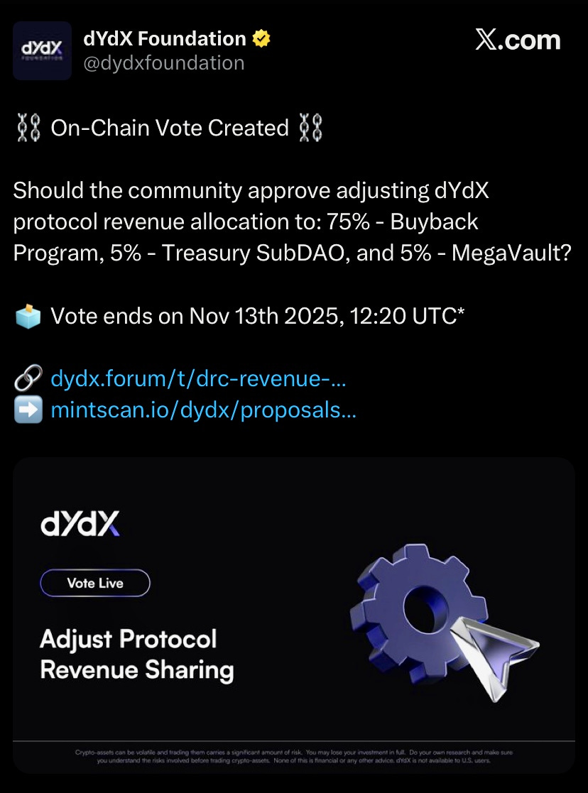 Dydx proposes to direct 75% of protocol income to buy back DYDX token