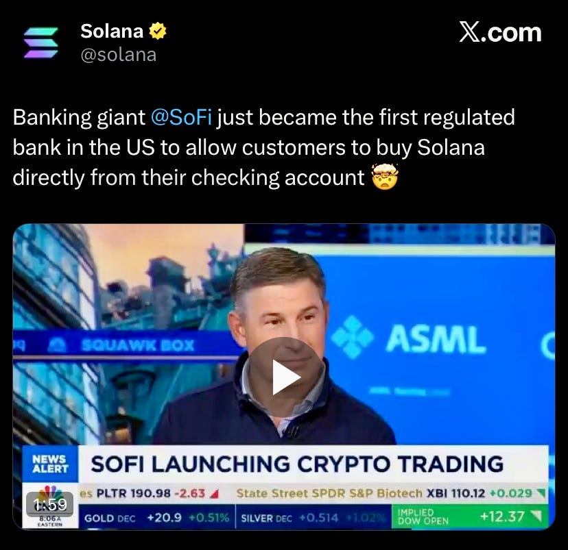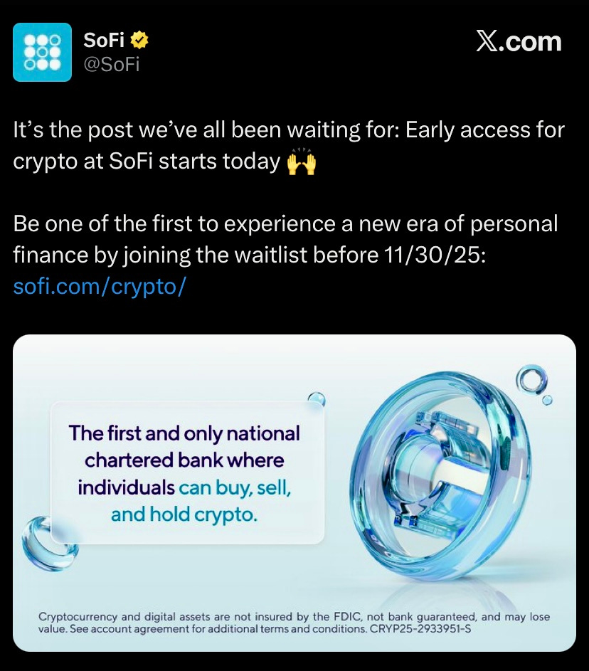SoFi Technologies launched SoFi Crypto, becoming the first nationally chartered U.S. bank to offer crypto trading directly from FDIC-insured accounts within its existing app.