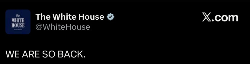 US White House X account tweets “We are so back” after ending 43 day government shutdown