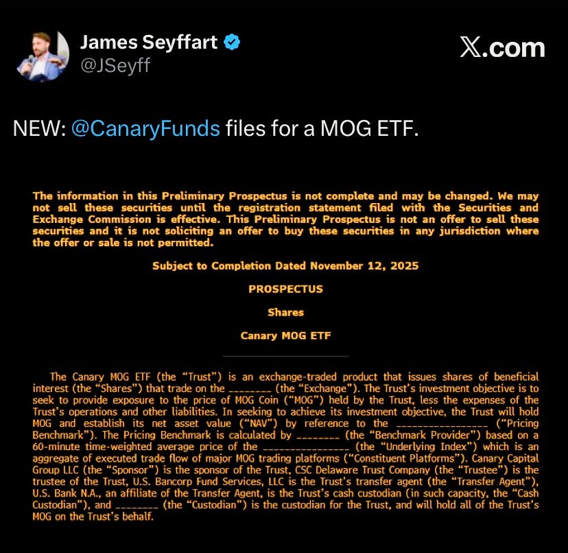 Canary Capital filed for a MOG Coin ETF with the SEC on Wednesday