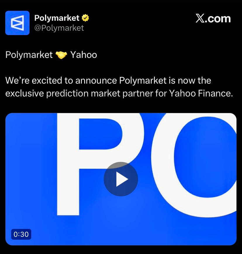 Polymarket is now the exclusive prediction market partner for Yahoo Finance.