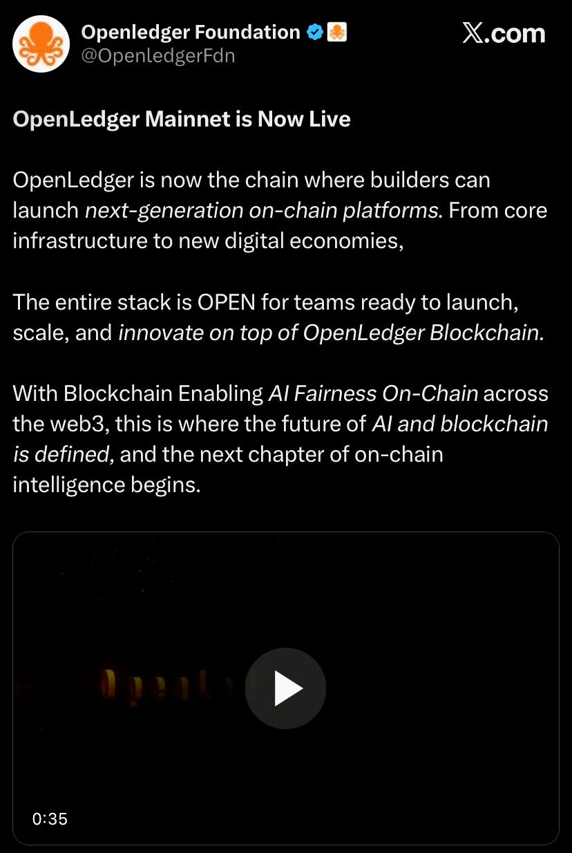 OpenLedger mainnet went live, a decentralized network tracking AI data lineage and automatically compensating contributors, after raising $8 million from Polychain Capital and Borderless Capital.