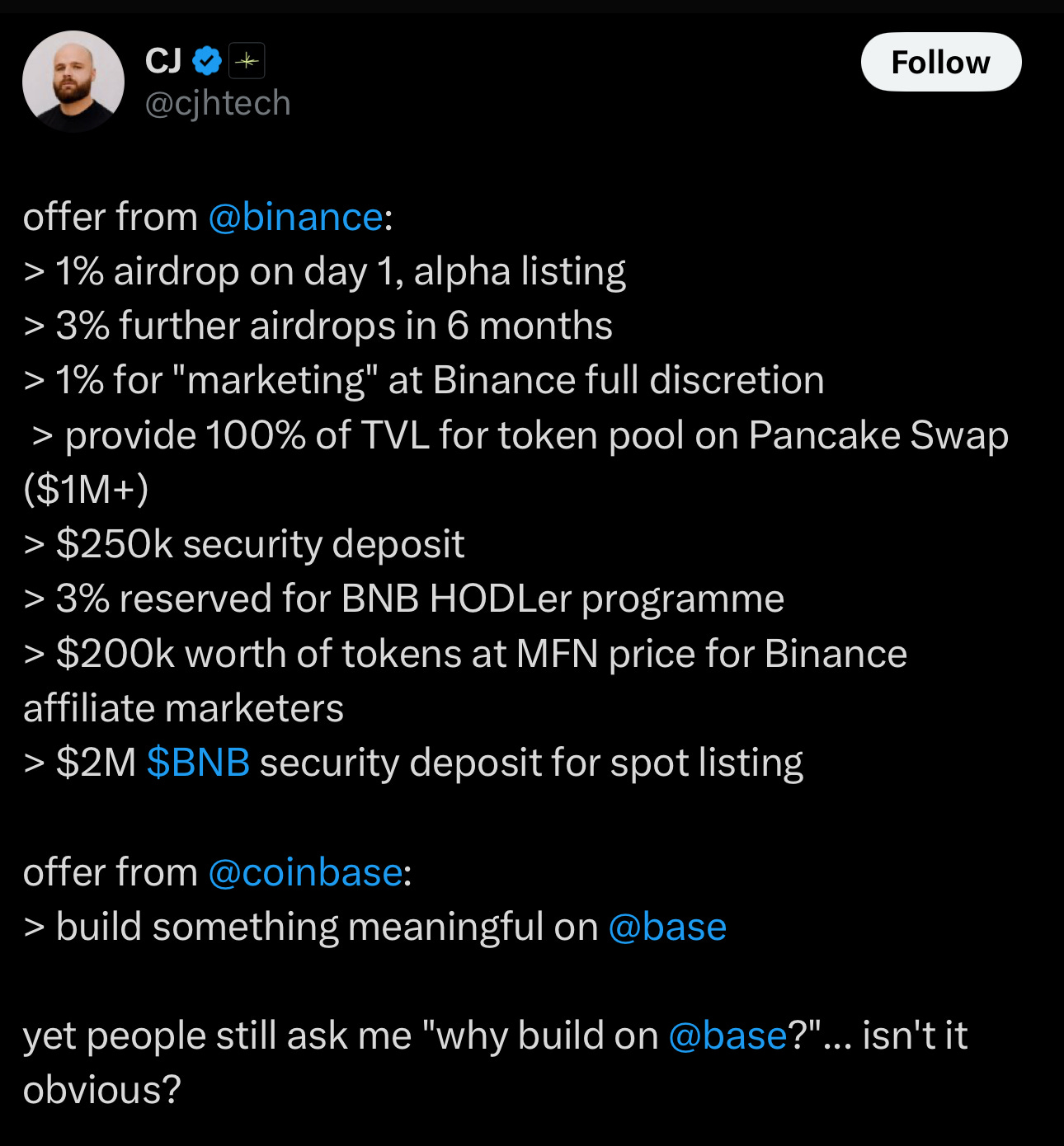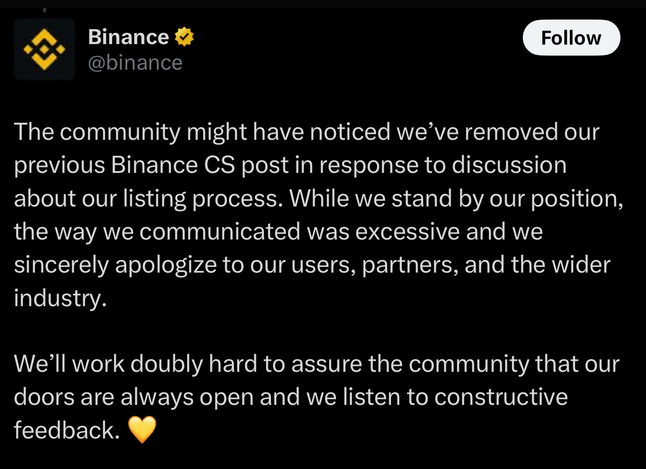 So this tweet from Limitless founder CJ, triggered fud on Binance in regards of their listing fees