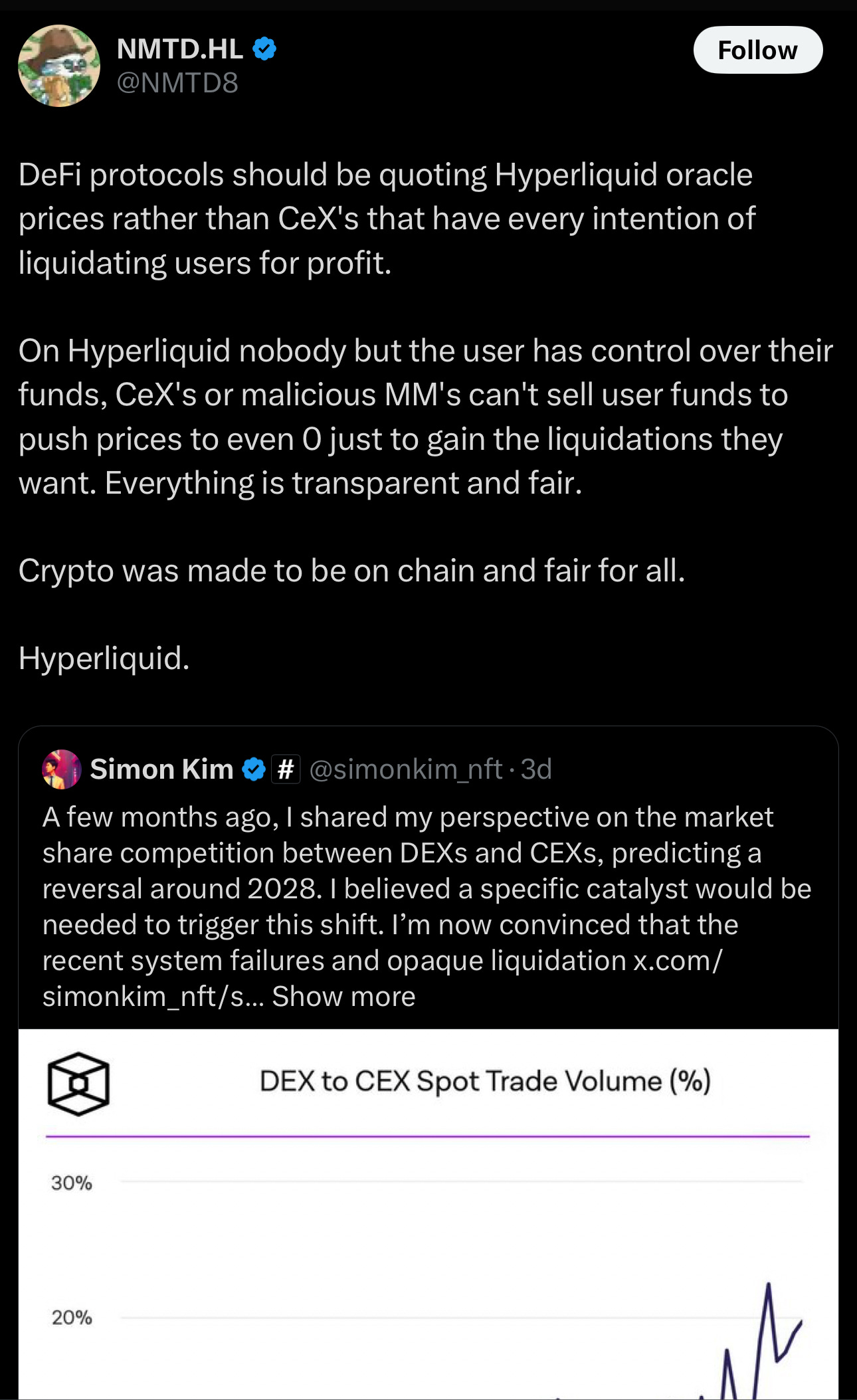 Degens are yearning for protocols to quote Hyperliquid oracle prices instead