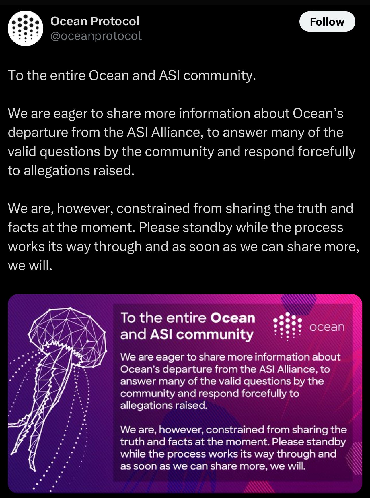 Ocean protocol withdrew from ASI (Artificial Superintelligence Alliance)