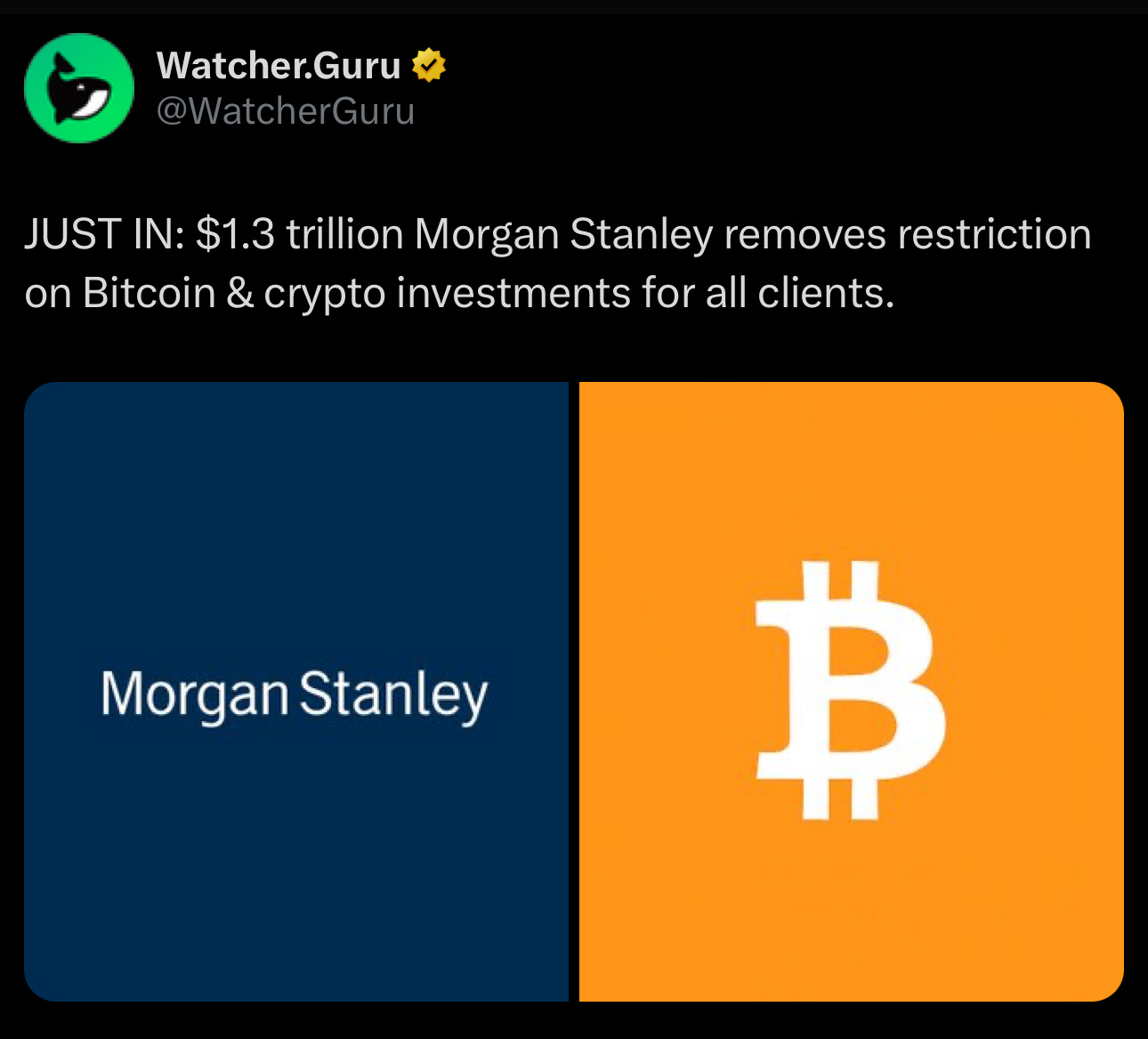 Morgan Stanley to remove restrictions on owning Bitcoin and crypto