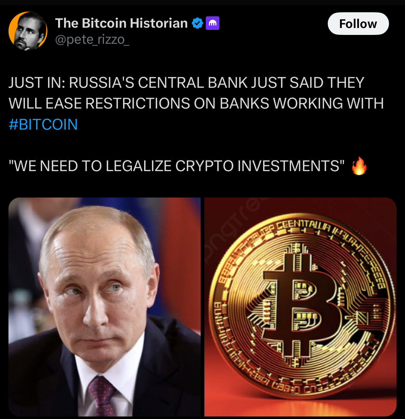 Russia Central bank to ease restrictions on banks working with Bitcoin