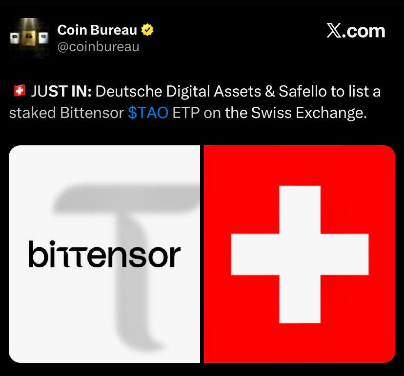 Swiss Exchange, Deutsche Digital Assets and Safello will list staked Bittensor TAO ETP