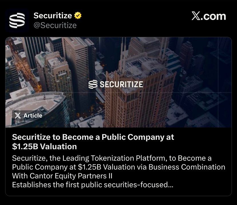 Securitize to become public at $1.25B valuation