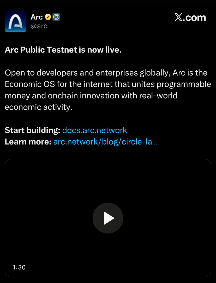 Circle launched public testnet for ARC, L1 designed for payment