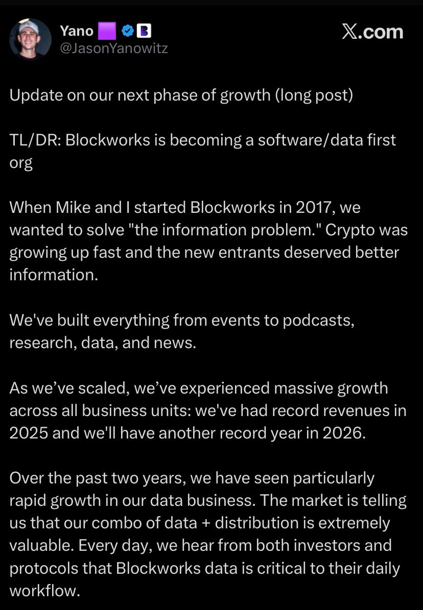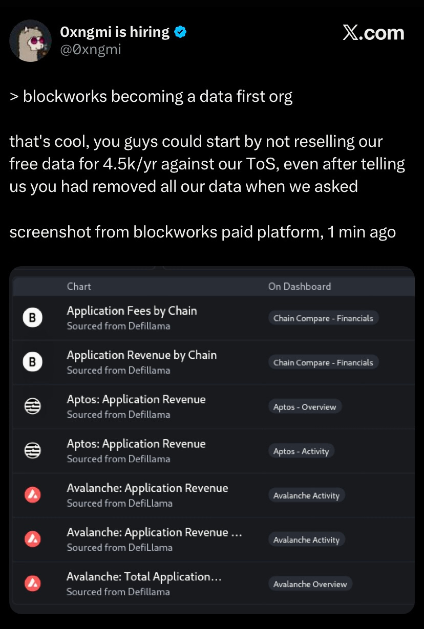 Blockworks lay off News division to focus on Data operations, although Defillama founder calls them out for reselling their free data