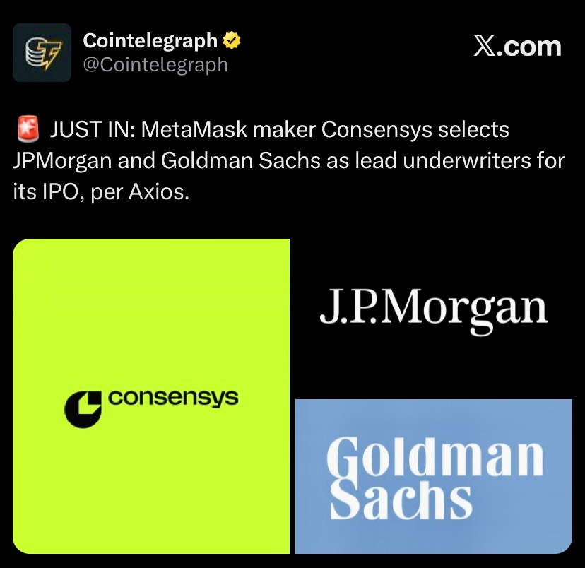 Consensys picks JPMorgan and Goldman Sachs to help with their IPO