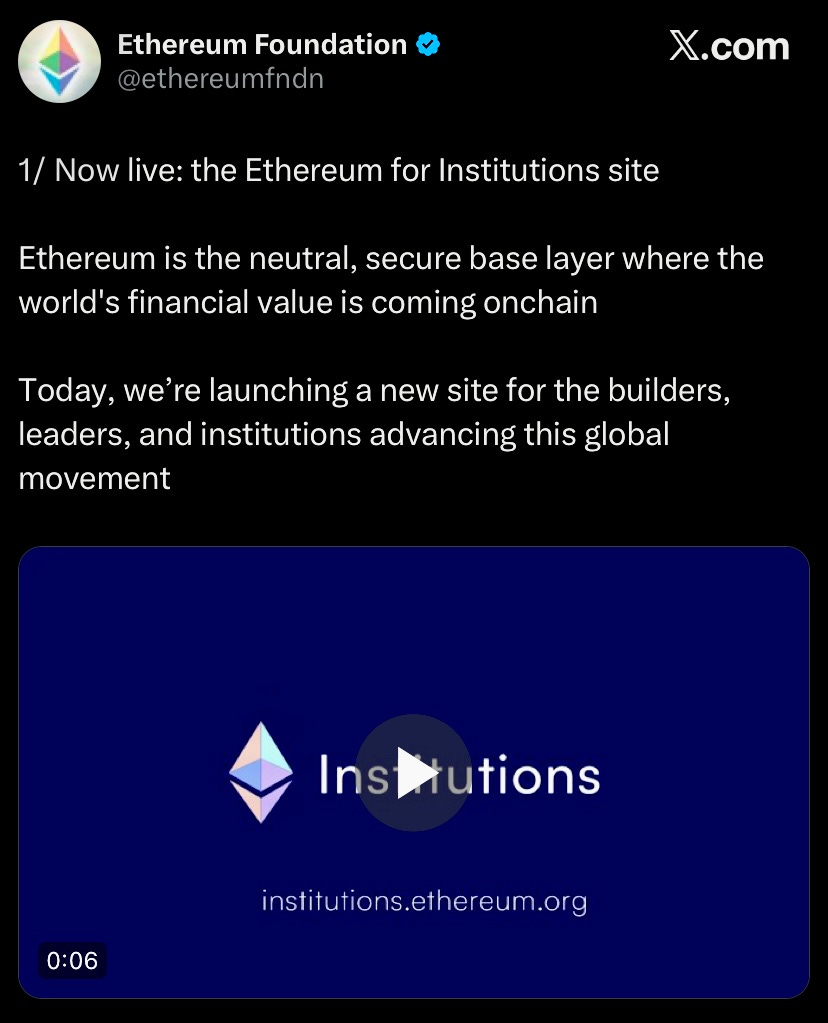 ETH foundation launched Ethereum for Institutions, a website to guide global institutions with trusted on chain resources