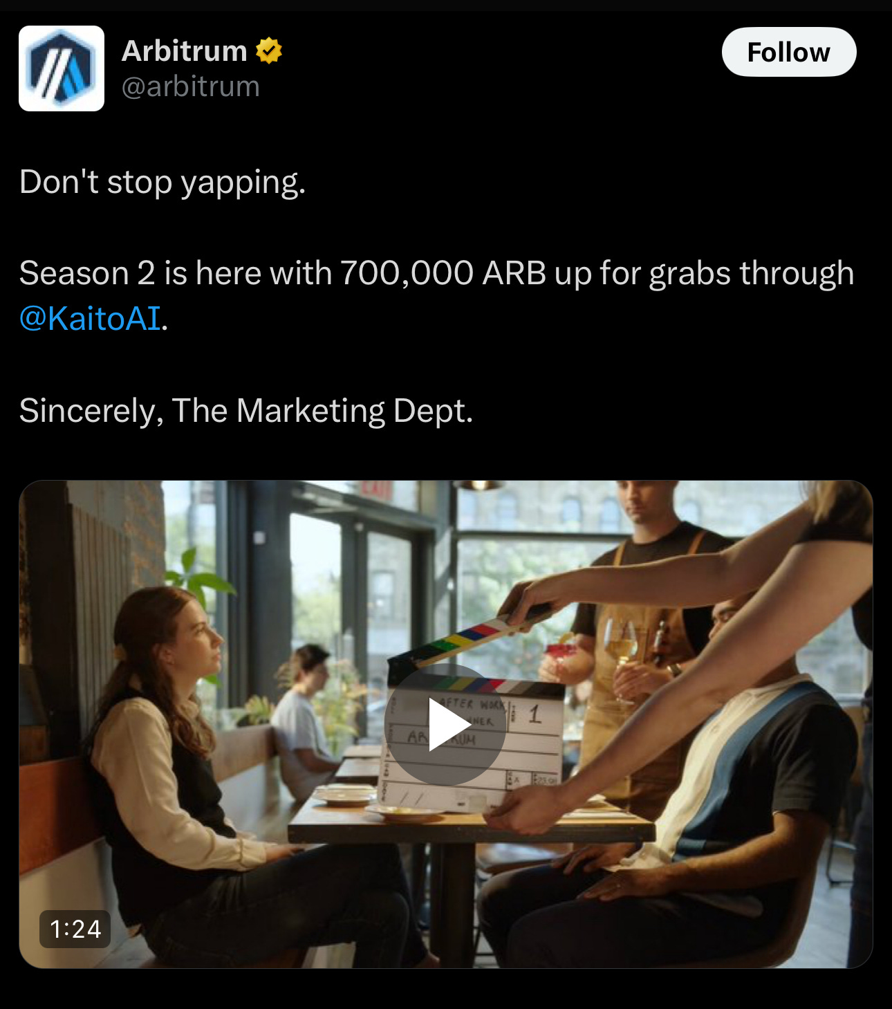 Arbitrum to distribute 700k Arb monthly over three months to top 150 yappers
