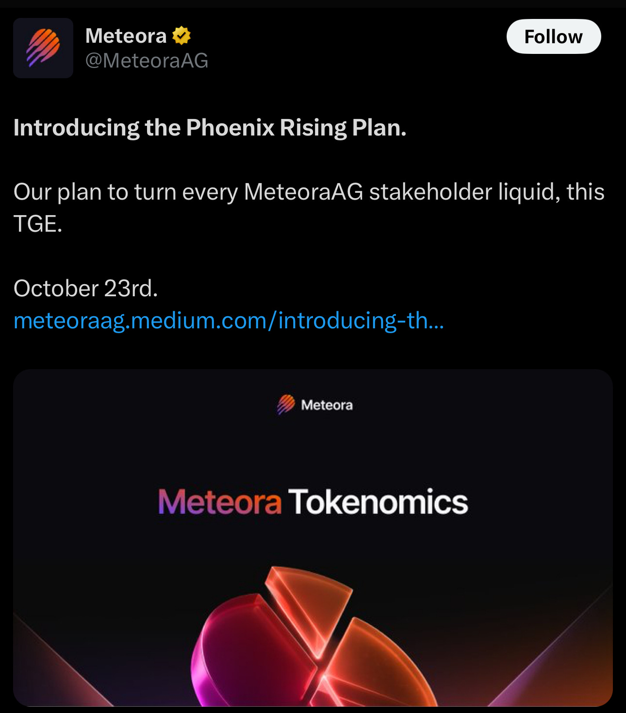 Meteora to airdrop on Oct 23, 48% supply to be unblocked at tge