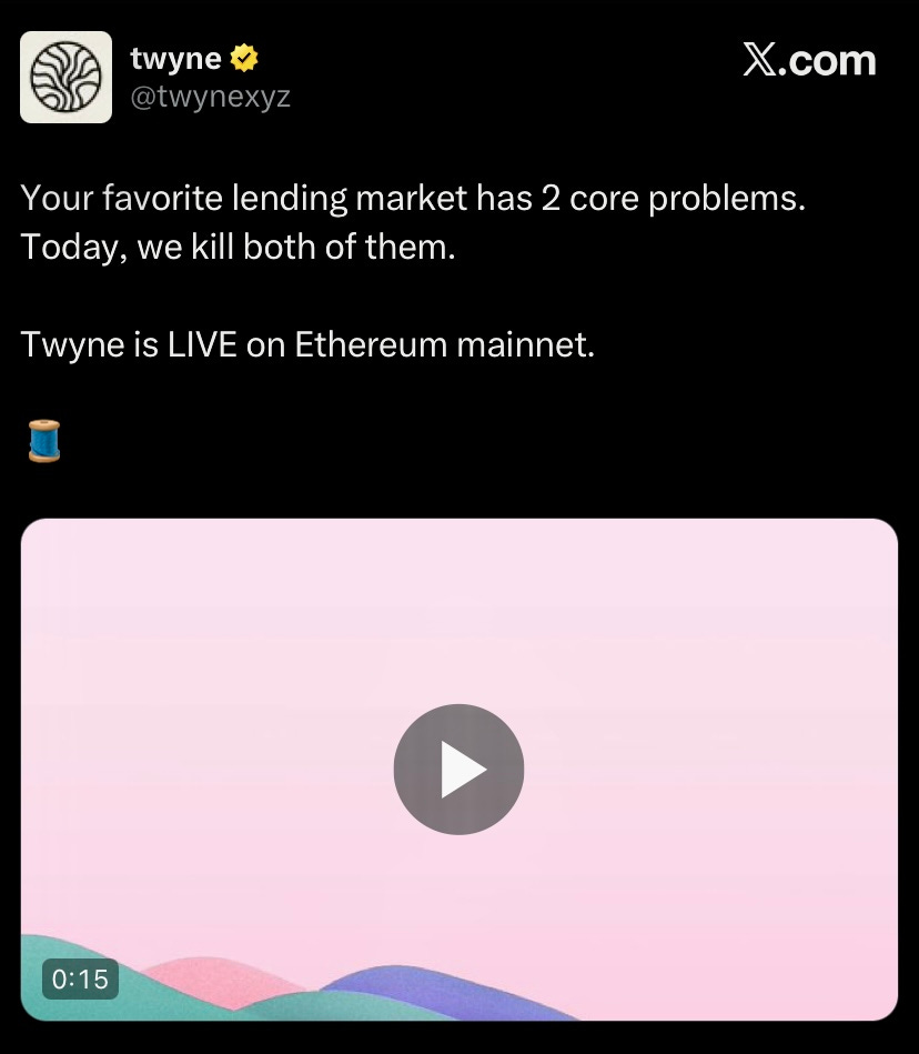 Twynexyz went live on ETH mainnet, it’s a protocol on Euler that lets borrowers rent unused lender credit for higher LTVs while boosting lender APYs