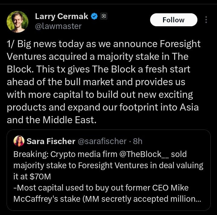 TheBlock sold majority stake to Foresight Ventures, a Singapore VC firm