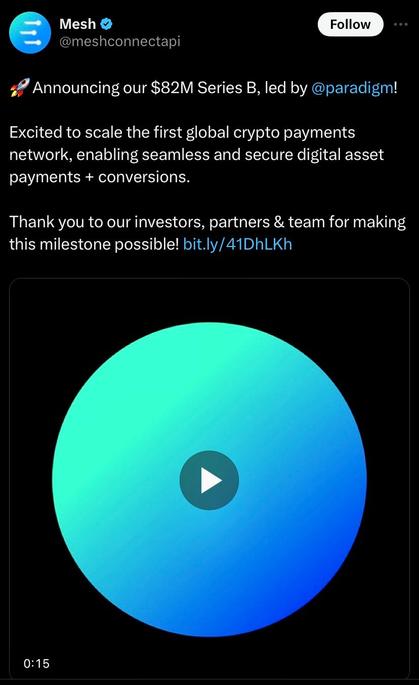 Crypto payment Mesh announce $82M series B round led by Paradigm