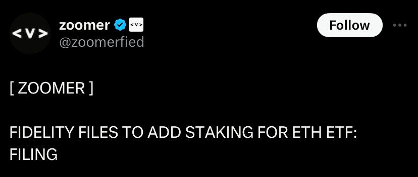 Fidelity files to add staking to ETH ETF