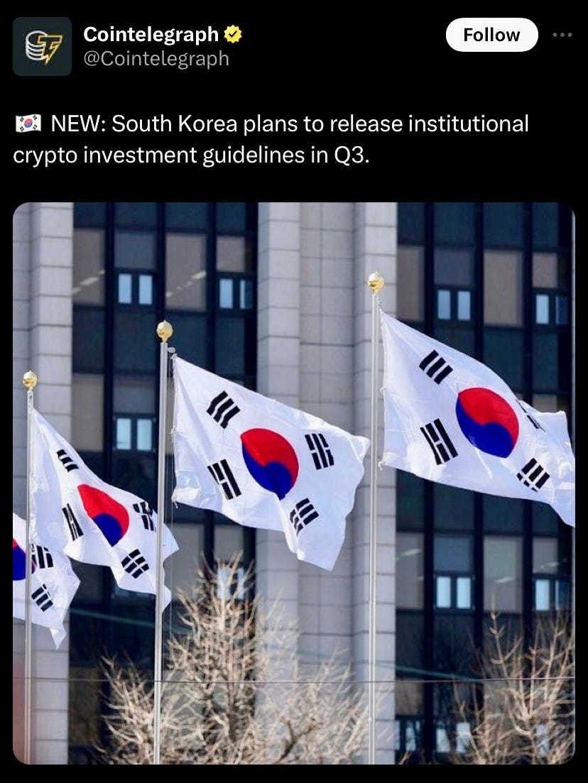 South Korea to release institutional crypto investment guideline in Q3