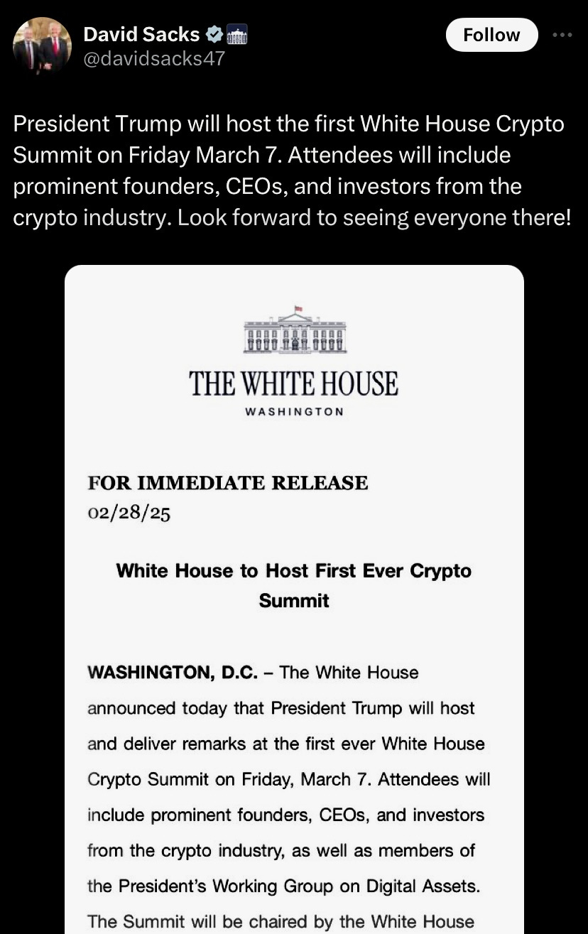 On March 7, US President Donald Trump’s crypto summit at the White House is the key event in the crypto space this week, as he may potentially order the Crypto Reserve right there.