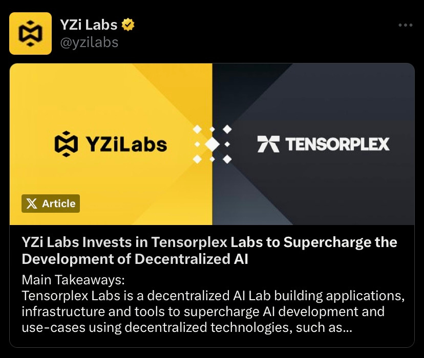 YZiLabs formerly Binance labs invests in Bittensor team, Tensorplex labs