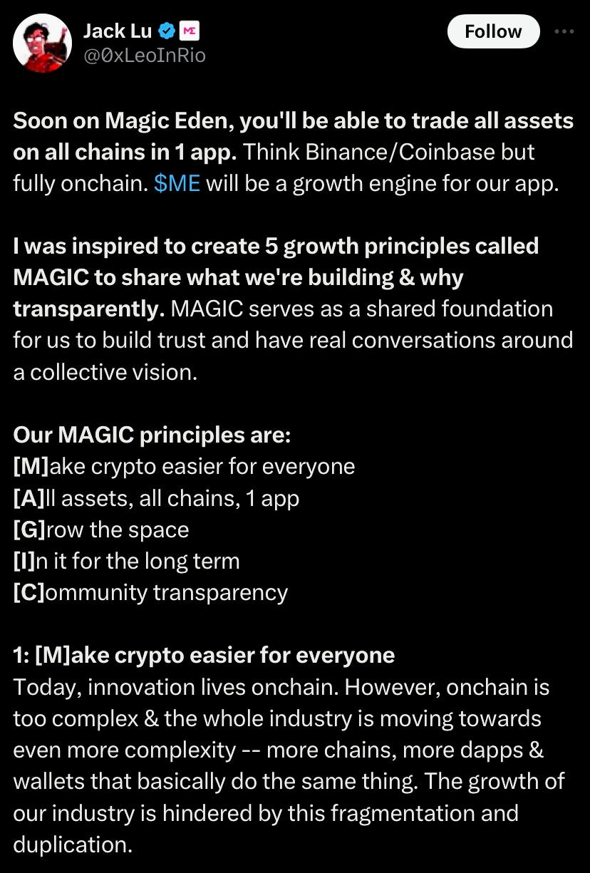 Magic Eden founders pledge to lock their tokens $ME until at least 18 months after TGE.