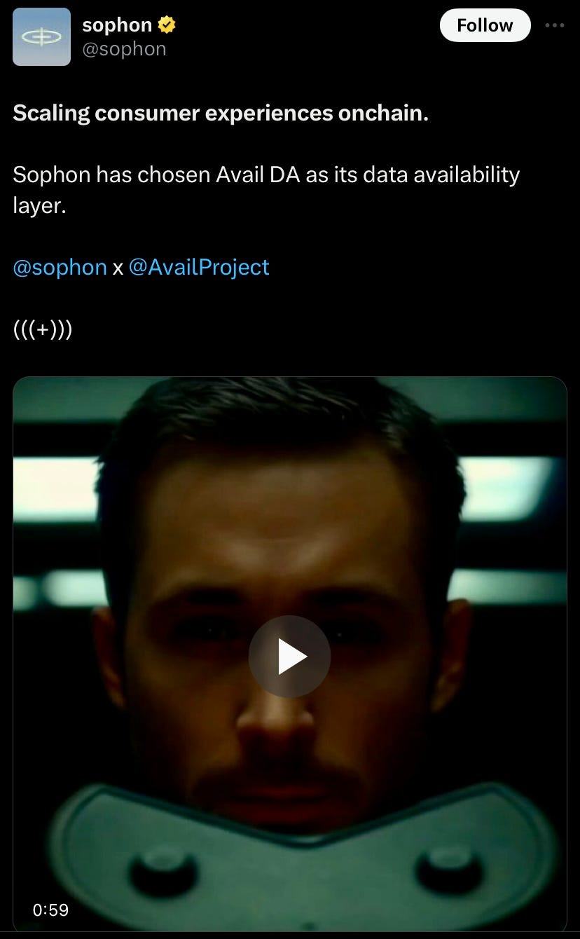Entertainment consumer chain, Sophon chooses Avail for DA layer