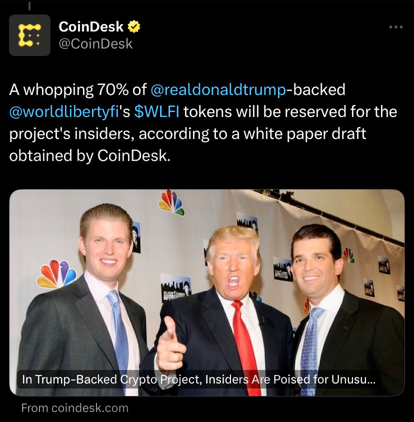Absurd Tokenomics of Trump’s Liberty Finance Defi protocol: 70% of token supply will go to insiders