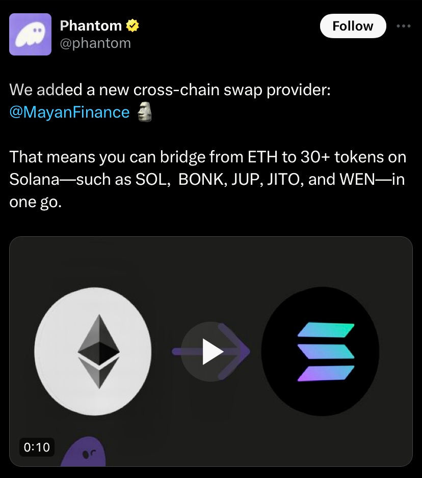 Powered by Wormhole and LIFI, native cross-chain swaps & transfers from Mayan Finance now integrated into Phantom