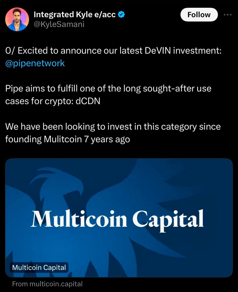 Permissionless labs close $10M round led by Multichain. They’ll use it to build Pipe network, a Content Delivery network that’ll use tokens to incentivize people hosting internet infrastructure