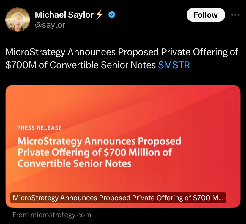 MicroStrategy plans to issue $700M in convertible senior notes, with $500M allocated to redeem an earlier tranche of notes