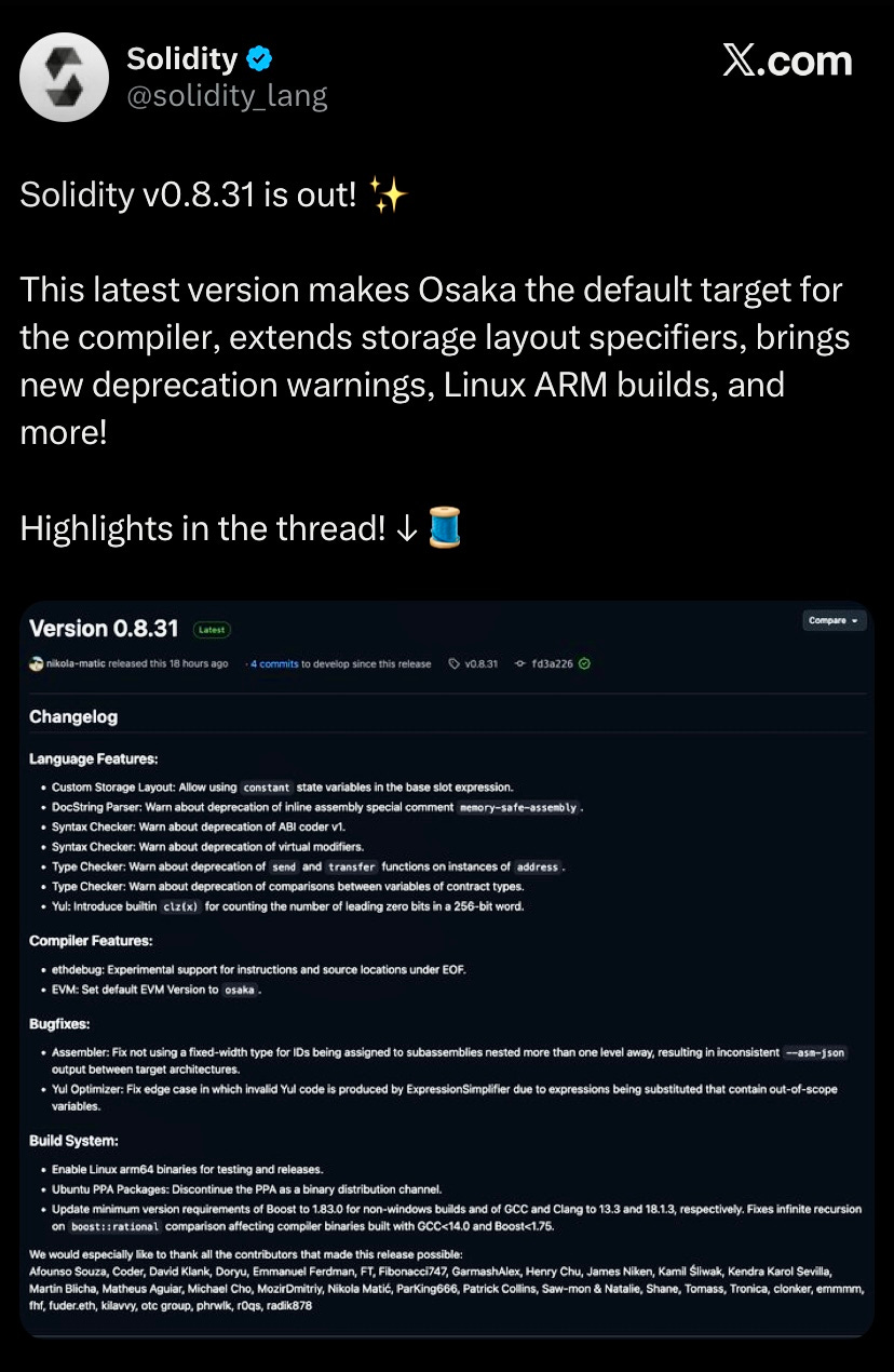 Solidify released new version, v0.8.31 brings new deprecation warnings etc