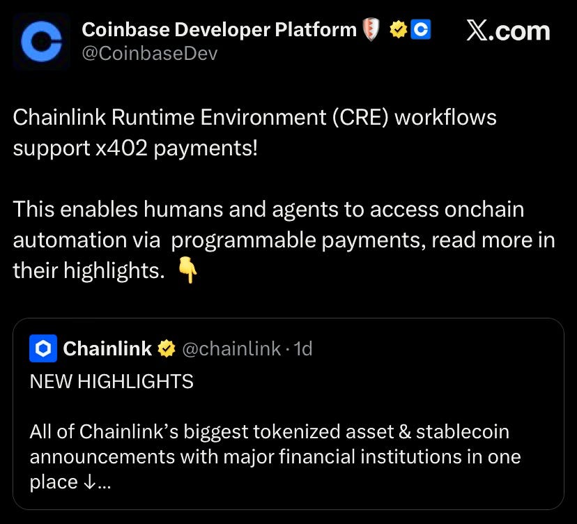 Chainlink Runtime Environment (CRE) now supports x402 payments