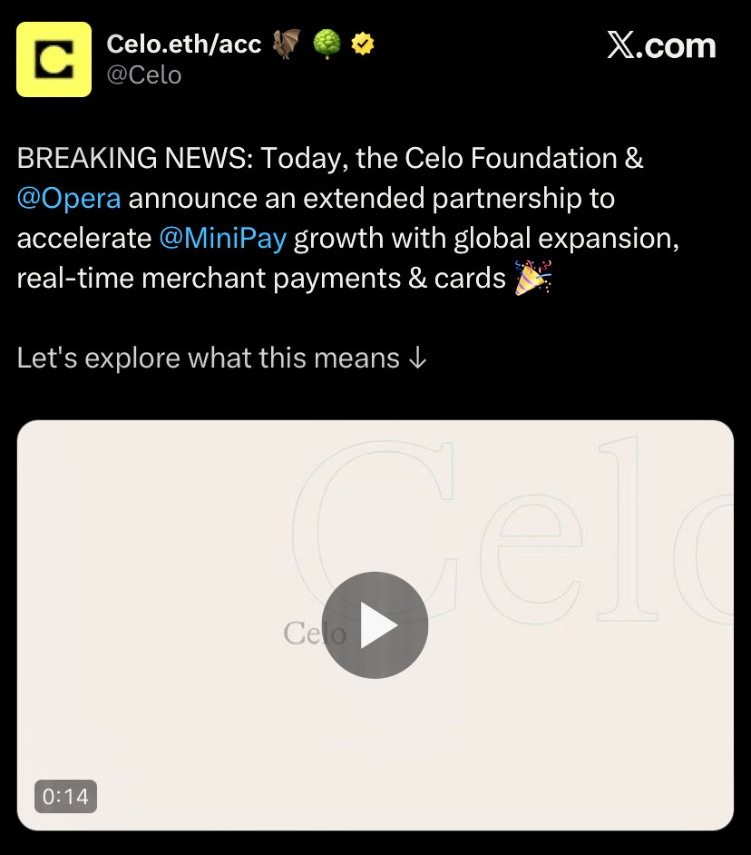 Celo partner with Opera to accelerate growth of Opera’s stablecoin card, MiniPay