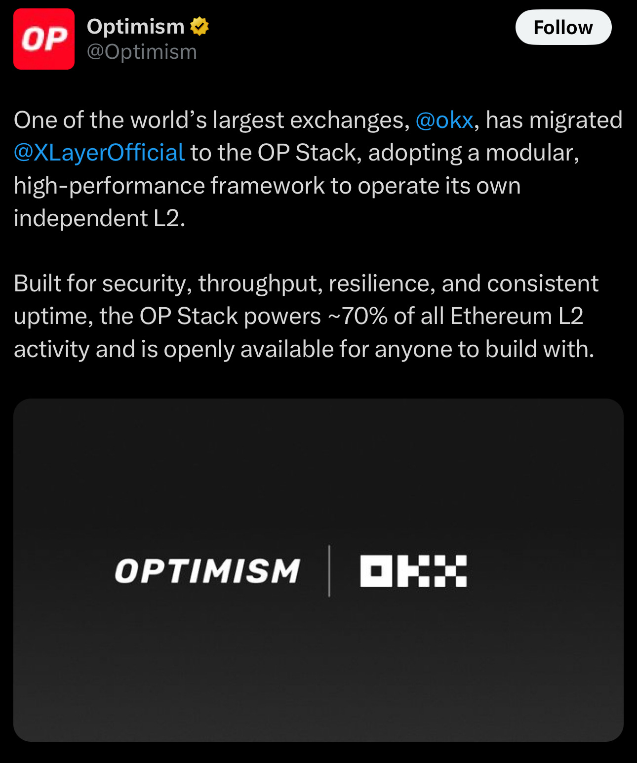 OKX migrated their native L2, X Layer from Polygon CDK to Optimism OP stack