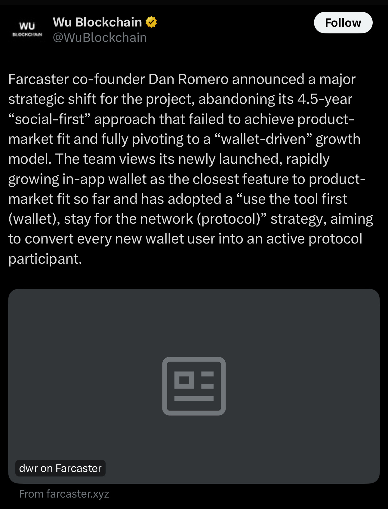 Farcaster announced full focus on Wallet dapp, ending support for Social App