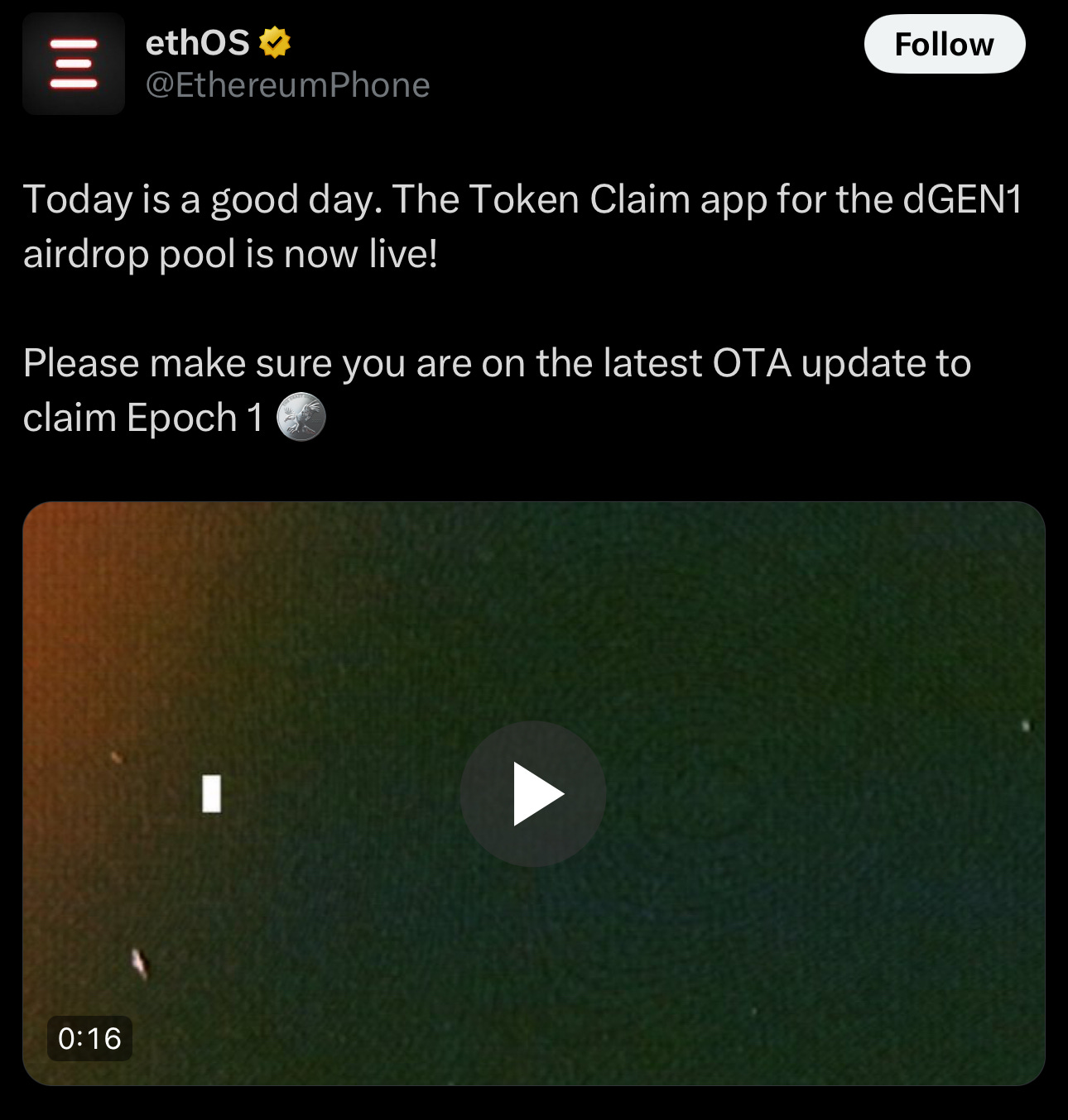 Ethereum Phone launched Token Claim app for dGEM1 airdrop pool