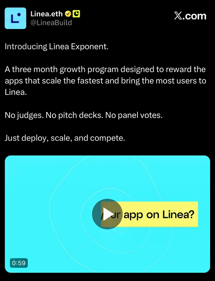 Linea unveiled Linea Exponent a 3 month program with $250k in prize pool for 42 top teams